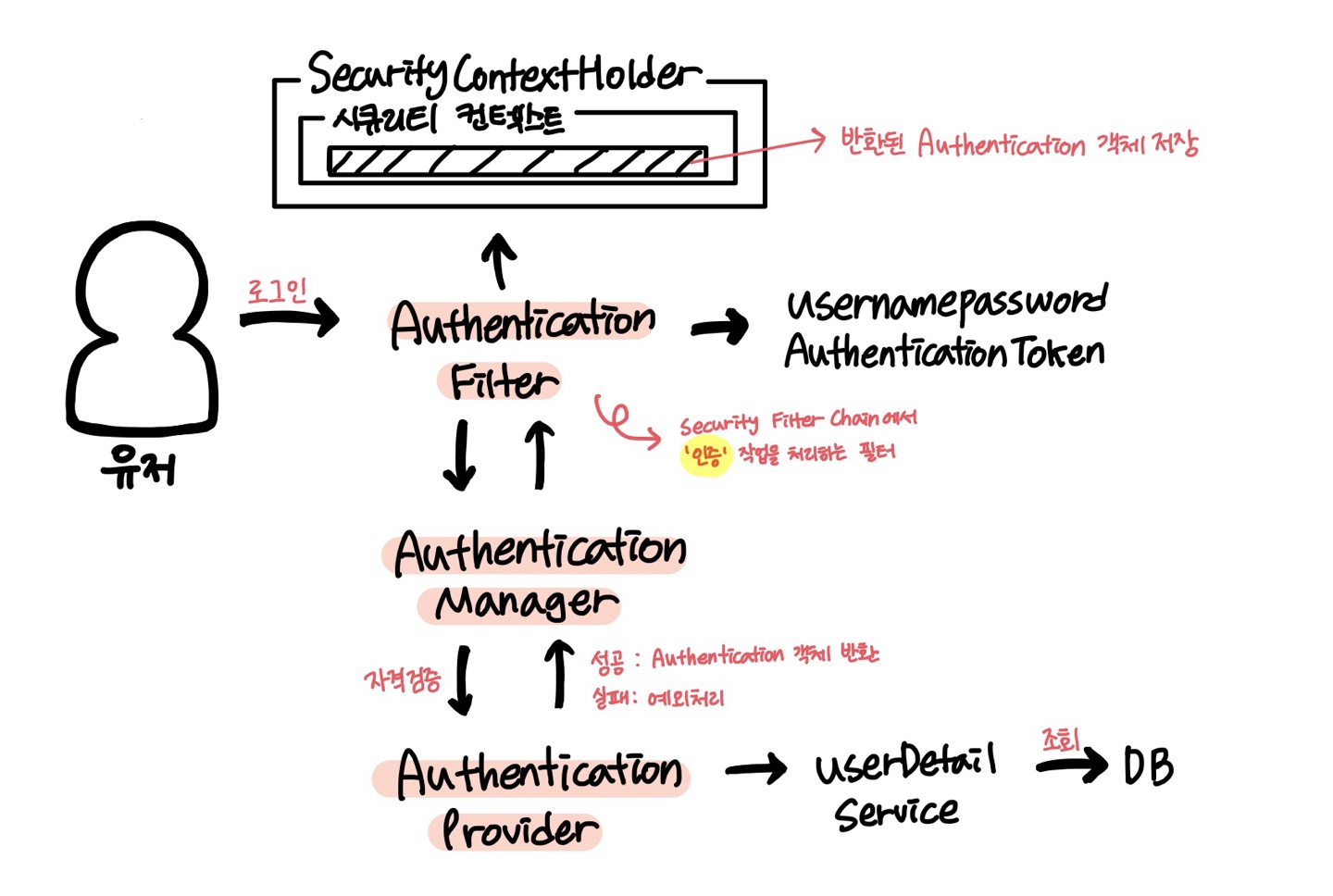| AuthenticationManager | 다양한 인증 제공자를 관리하며, 인증 요청을 처리합니다. |